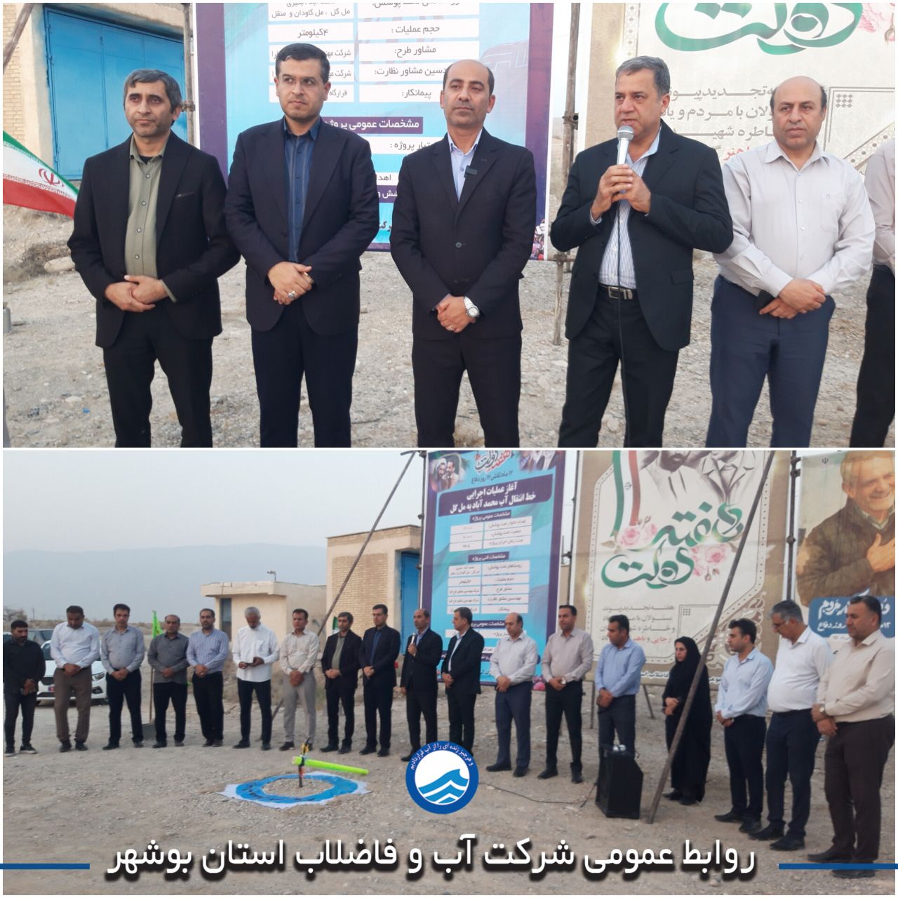 عملیات اجرایی خط انتقال آب محمدآباد به ملگل در شهرستان دشتی با حضور مدیرعامل شرکت آب و فاضلاب استان بوشهر و فرماندار دشتی کلید خورد.